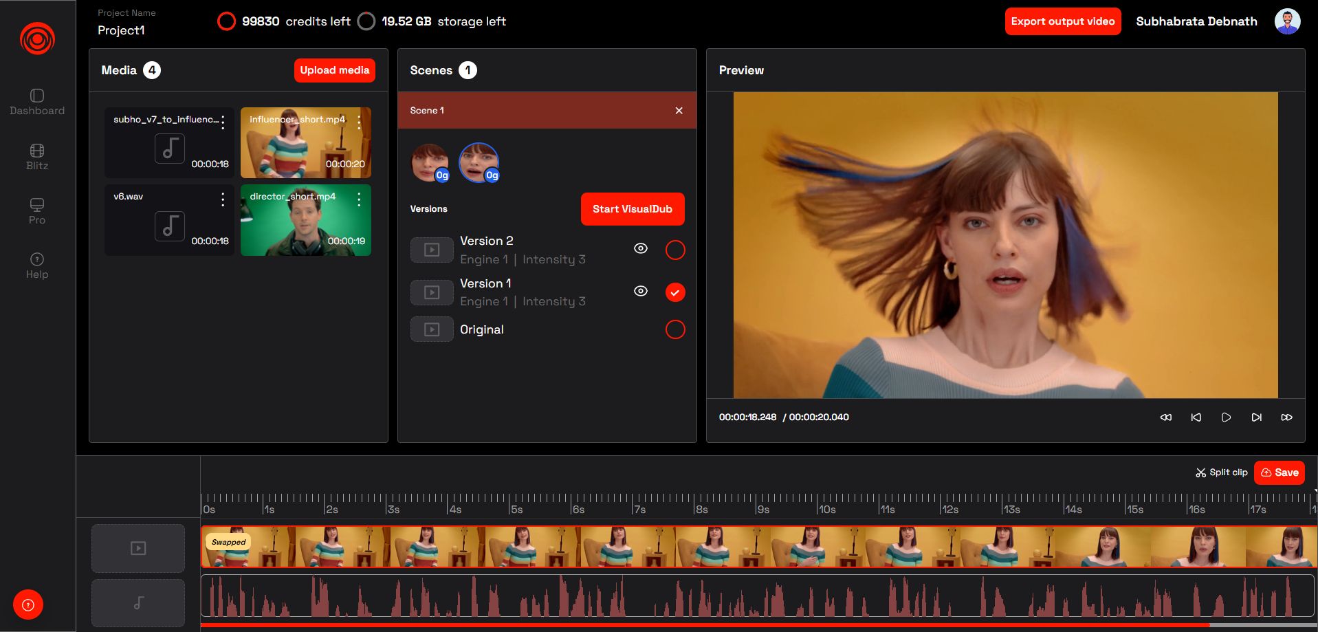 Designed with professionals in mind, VisualDub fits effortlessly into existing cinematic workflows. Whether you’re working in advertising, film, or OTT platforms, the platform ensures that lip-syncing technology can be added without disrupting established processes.